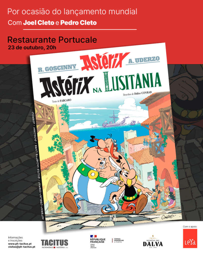 Valorizar a Memória, a História e o Património. PRÓXIMAS INICIATIVAS FESTAS FELIZES Festas Felizes, um Natal solidário e a renovação da esperança, tão necessária, no Novo Ano, são os votos da TACITUS a todos os seus amigos, parceiros e colaboradores. VISITA DE REIS 2026 Logo no início do novo ano, na manhã de sábado, 3 de janeiro 2026, a TACITUS vai organizar uma visita guiada por Joel Cleto que, percorrendo a Baixa portuense, evoca os Reis Magos (cujo Dia ocorre a 6 de janeiro). Pensando ainda na quadra natalícia, relembramos que se a sua opção for a de “oferecer” esta visita, enviaremos por correio electrónico ESTE NATAL OFEREÇA… NATAL PROGRAMA ESGOTADO! Este Natal ofereça… Natal. Mais precisamente um voucher para uma visita natalícia no Porto que é já um “clássico” da TACITUS. Guiada por Joel Cleto, esta visita de cerca de duas horas e meia, com direito a café e bolo-rei, aborda temas como o Pai Natal, a Natividade ou os presépios, num percurso que passa, entre outros, pela 80 ANOS DO AEROPORTO DO PORTO EM EXPOSIÇÃO A TACITUS concebeu e organizou a exposição “80 anos do Aeroporto do Porto. 80 anos a preparar o futuro” patente no piso de embarque do aeroporto desde o dia da efeméride: 2 de dezembro de 2025. Resultante de um desafio lançado à TACITUS pela ANA – Aeroportos de Portugal através da direção do Aeroporto do Porto, esta exposição conta com APRESENTAÇÃO DO LIVRO “A TORRE DOS CLÉRIGOS” NO INSTITUTO SÉNIOR DA FOZ O livro-catálogo “A Torre dos Clérigos” referente ao projeto fotográfico de Sérgio Jacques, editado pela TACITUS, vai ser apresentado no Instituto Sénior da Foz *as 14:30 do próximo dia 15 de dezembro com uma conversa entre o autor fotógrafo e o historiador Joel Cleto que, nesta publicação, assina um texto sobre a relação de Nasoni com o Porto. O livro A TORRE DOS CLÉRIGOS. EXPOSIÇÃO DE SÉRGIO JACQUES O auditório e sala de exposições “Âmbito Cultural” do Corte Inglés em Vila Nova de Gaia recebe, de 5 de novembro até ao final de 2025, a exposição, promovida pela TACITUS, “A Torre dos Clérigos”, com fotografia de Sérgio Jacques. Reportagem e fotos da inauguração e da palestra: AQUI Esta mostra integra-se nas comemorações dos 300 anos da chegada de NO CENTENÁRIO DA BURLA DE ALVES DOS REIS. VISITA GUIADA AS DUAS SESSÕES ENCONTRAM-SE ESGOTADAS Foi no início de dezembro de 1925 que, em instituições bancárias da cidade do Porto, se detetou e teve início a investigação que revelaria a maior fraude da história bancária em Portugal. O homem na origem da maior falsificação de notas da história, Artur Alves dos Reis, conseguiu desse modo ter 1% do PIB português, 3º CICLO DE VISITAS A CEMITÉRIOS HISTÓRICOS DO GRANDE PORTO – 2026 A TACITUS irá realizar no verão de 2026 um terceiro ciclo de visitas a cemitérios históricos do Grande Porto. Orientadas, à semelhança dos dois ciclos anteriores, por Francisco Queiroz, as sessões estão já definidas e calendarizadas. Mais próximo do ciclo serão abertas as inscrições. Até lá, vá tomando nota na sua agenda . 14 junho, 10h – Do cenotáfio de Carlos VISITAS HISTÓRICAS E PATRIMONIAIS: O PORTO Ao longo de todo o ano a TACITUS promove visitas de interesse histórico e patrimonial na cidade do Porto e na Área Metropolitana. Mas, além destas sessões abertas ao público em geral, a TACITUS organiza também visitas guiadas pelo historiador Joel Cleto para grupos “fechados” (de empresas, amigos, aniversariante…) que desejem conhecer melhor o Porto, a sua História e o AS NOSSAS NOTÍCIAS MUSEU DO CONFLITO FINALISTA DOS PRÉMIOS PATRIMÓNIO IBÉRICO 2025 O Museu do Conflito, projecto museológico do Tribunal da Relação do Porto, concebido e produzido pela TACITUS, foi nomeado como um dos projetos finalistas dos Prémios Património Ibérico 2025. O júri internacional selecionou, entre os candidatos, três projetos para cada uma das diversas categorias a concurso, sendo que o Museu do Conflito concorre na área da estratégia de comunicação na JANTAR DE APRESENTAÇÃO DE “ASTERIX NA LUSITÂNIA” Teve lugar, na noite de 30 de outubro o segundo dos dois jantares temáticos através dos quais a TACITUS, com o apoio da LEYA, se associou ao lançamento mundial do mais recente album “Asterix na Lusitânia”. Agradecemos a todos os quee esgotaram estas duas sessões, no histórico restaurante “Portucale” (localizado na antiga Calécia, mas debruçado sobre a Lusitânia que se ASTERIX NA LUSITÂNIA TACITUS NO LANÇAMENTO MUNDIAL DE “ASTERIX NA LUSITÂNIA”. Quase 70 anos após o seu nascimento, as aventuras de Astérix decorrem pela primeira vez em Portugal… perdão… na Lusitânia. A apresentação mundial foi a 23 de outubro 2025 e, nessa noite, a TACITUS, com o apoio da editora LEYA, promoveu uma iniciativa que integrou o programa oficial de lançamento do álbum! TACITUS NA PÓVOA DE LANHOSO A TACITUS promoveu no dia 29 de novembro 2025 uma visita guiada por Joel Cleto a Póvoa de Lanhoso com passagem, entre outros locais e monumentos, pelo castro de Lanhoso, castelo de Lanhoso (incluindo o espaço museológico na torre de menagem), santuário da Senhora do Pilar, monumento a “Maria da Fonte” e igreja de São Salvador de Fontarcada (onde teve LIVRO “A TORRE DOS CLÉRIGOS”, EDITADO PELA TACITUS, NO ATMOSFERA M O livro-catálogo “A Torre dos Clérigos” referente ao trabalho (e exposição) fotográfico de Sérgio Jacques, editado pela TACITUS, foi apresentado no espaço cultural “Atmosfera M” da Associação Mutualista Montepio Geral (Rua Julio Dinis, nº158, no Porto) no fim da tarde (18h) do dia 20 de novembro com uma conversa entre o autor fotógrafo e o historiador Joel Cleto que, nesta VISITA À QUINTA DE S. GENS EM NOVEMBRO “Da Quinta do Rio à Quinta de S. Gens. Nos 130 anos da integração de Ramalde no Porto” – foi este o tema da última sessão do ciclo de vis