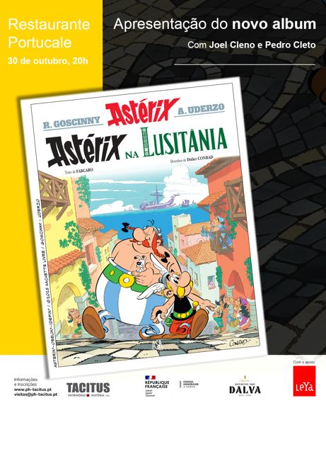 ASTERIX NA LUSITÂNIA Outubro 25, 2025 TACITUS NO LANÇAMENTO MUNDIAL DE “ASTERIX NA LUSITÂNIA”. Quase 70 anos após o seu nascimento, as aventuras de Astérix decorrem pela primeira vez em Portugal… perdão… na Lusitânia. A apresentação mundial foi a 23 de outubro 2025 e, nessa noite, a TACITUS, com o apoio da editora LEYA, promoveu uma iniciativa que integrou o programa oficial de lançamento do álbum! Face ao sucesso da iniciativa (os 70 lugares do restaurante esgotaram em menos de 12h) a TACITUS repetiu a sessão uma semana depois, a 30 de outubro. Num jantar especial (com javali, claro), Joel Cleto falou sobre a Lusitânia e os povos que aí (e na Calecia) resistiram aos romanos. Pedro Cleto, destacado especialista e crítico de banda-desenhada, abordou a história desta famosa criação. A sessão, que decorreu num dos mais emblemáticos e históricos restaurantes do Porto – o “Portucale” (no topo do edifício da Cooperativa dos Pedreiros, na rua da Alegria, 598) – contou também com a colaboração do Consul Honorário de França, Manuel Cabral, e da DALVA através do seu diretor Jorge Dias. Durante o jantar os participantes escutaram também algumas explicações do editor de Asterix em Portugal, Vitor Mota. O jantar possuiu o seguinte “alinhamento”: – Aperitivos do Chefe, com rojão de javali – Crepe de camarão sobre salada de rúcula – bochecha de javali em vinho tinto com arroz de forno – sopa de frutos vermelhos com gelado de baunilha – café e brinde final com “Poção Mágica” (produzida nos limites da Lusitânia, nas margens do rio Douro) Fotografias e reportagem (da sessão de 23 de outubro): https://www.facebook.com/PHTacitus/posts/1492780452851536 Fotografias e reportagem (da sessão de 30 de outubro): https://www.facebook.com/PHTacitus/posts/1500493205413594 Valor de inscrição: 75 euros (inclui um exemplar do álbum) Inscrição e Pagamento:1. Manifeste a sua vontade em participar através do email visitas@ph-tacitus.pt, indicando o seu nome completo, número de contribuinte (para emissão da posterior fatura-recibo) e, se possível, telemóvel. 2. Nos três dias seguintes a equipa da TACITUS confirmará a disponibilidade de vaga. Após esta nossa confirmação dispõe de 5 dias para proceder ao pagamento através de transferência bancária: para a conta PT50 0036 0157 99100077880 35 do Montepio Geral, em nome de PH Tacitus Lda., devendo enviar por email o comprovativo do pagamento. 3. Num prazo de dois dias um email de “confirmação de inscrição” é enviado pela TACITUS ao participante. 4- Em data muito próxima da iniciativa a TACITUS envia email para a recordar e com algumas informações práticas. Política de cancelamento de inscrição:Caso pretenda anular a sua inscrição, poderá fazê-lo com direito ao reembolso na íntegra até 5 dias antes da realização da iniciativa. A partir dessa altura não nos é possível efectuar qualquer reembolso. Política de cancelamento da atividade:A sessão só terá lugar com um mínimo de 40 participantes. Caso a sessão seja cancelada pela razão acima apontada ou por motivos de força maior, o participante poderá escolher uma destas opções:a) participar da sessão na sequência do seu reagendamento.b) reembolso total do valor pago aquando da inscrição. Informamos ainda que, durante a iniciativa, serão recolhidas imagens fotográficas (e eventualmente vídeo) para divulgação das mesmas nas redes sociais. Ao inscrever-se nesta actividade está a autorizar a captação de imagens para os referidos fins. Responsável pelo tratamento de dados: ph-tacitus@ph-tacitus.pt Partilhe esta informação com os seus amigos… FacebookGoogle Twitter Pinterest Linkedin Print Navegação de artigos LIVRO “A TORRE DOS CLÉRIGOS”, EDITADO PELA TACITUS, NO ATMOSFERA MVISITA À QUINTA DE S. GENS EM NOVEMBRO