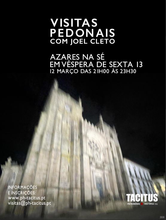 VISITAS HISTÓRICAS E PATRIMONIAIS: O PORTO Fevereiro 5, 2026 Ao longo de todo o ano a TACITUS promove visitas de interesse histórico e patrimonial na cidade do Porto e na Área Metropolitana. Mas, além destas sessões abertas ao público em geral, a TACITUS organiza também visitas guiadas pelo historiador Joel Cleto para grupos “fechados” (de empresas, amigos, aniversariante…) que desejem conhecer melhor o Porto, a sua História e o seu Património. Eis alguns exemplos (para visitas de cerca de duas horas e meia) já organizadas pela TACITUS para o público em geral, ou a pedido de algumas instituições: Partilhe esta informação com os seus amigos… FacebookGoogle Twitter Pinterest Linkedin Print Navegação de artigos 3º CICLO DE VISITAS A CEMITÉRIOS HISTÓRICOS DO GRANDE PORTO – 2026A TORRE DOS CLÉRIGOS. EXPOSIÇÃO DE SÉRGIO JACQUES